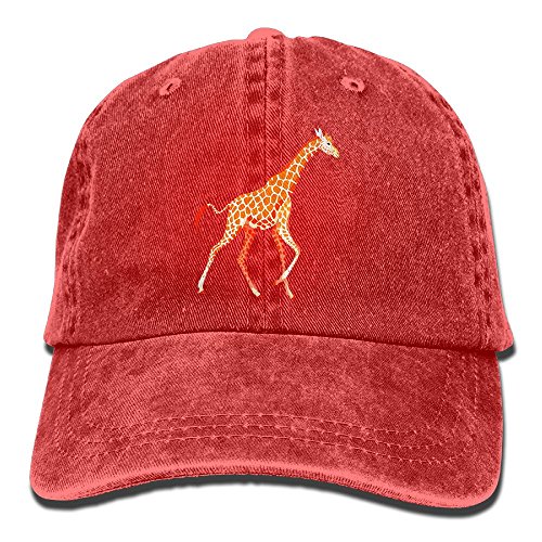 大人 デニム キャップジラフ キリン モー モー アニマル柄 デザイン 大人気 ダンスの帽子 レジャー・キャップ 通気性良好 紫外線対策 日よけ 小顔効果 プリント付き 無地 レッド