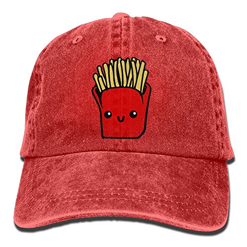 大人 デニム キャップフライドポテト 今季最新 旅行 レジャー・キャップ クール 紫外線対策 日よけ 小顔効果 プリント付き 無地 レッド