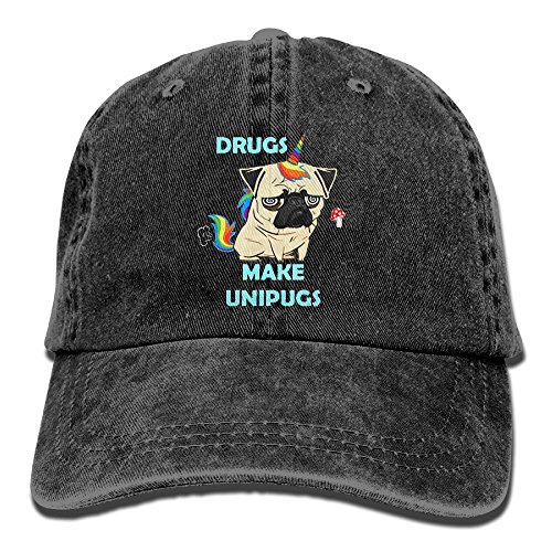 大人 デニム キャップ麻薬 ユニプツプ パグ ユニコーン ロゴ 大人気 ダンスの帽子 ハット UVカット 紫外線対策 日よけ 小顔効果 プリント付き 無地 ブラック