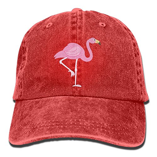 大人 デニム キャップフラミンゴ 今季最新 旅行 ハット クール 紫外線対策 日よけ 小顔効果 プリント付き 無地 レッド