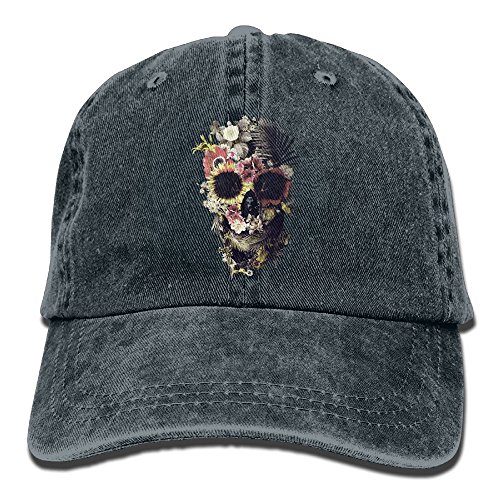 大人 デニム キャップ花 スカル 頭 デザイン 今季最新 登山 キャップ オールシーズン 紫外線対策 日よけ 小顔効果 プリント付き 無地 ライトブルー