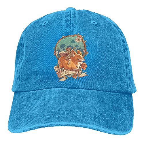 大人 デニム キャップフライング コーギー 今季最新 ゴルフ レジャー・キャップ 軽量 紫外線対策 日よけ 小顔効果 プリント付き 無地 ブルー