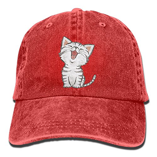 大人 デニム キャップアメリカンショートヘア ハッピー ネコ 今季最新 登山 ハット ファッション 紫外線対策 日よけ 小顔効果 プリント付き 無地 レッド