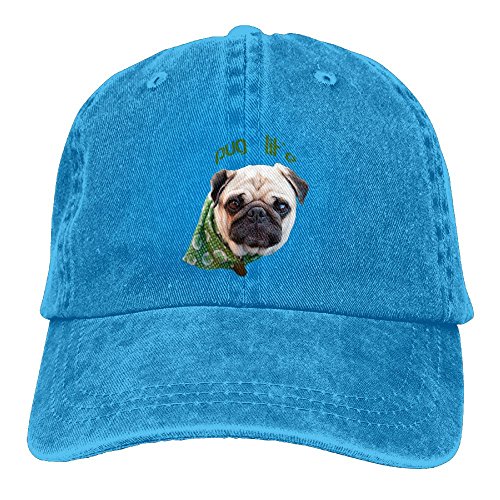 大人 デニム キャップパグ ライフ 大人気 釣り レジャー・キャップ クール 紫外線対策 日よけ 小顔効果 プリント付き 無地 ブルー