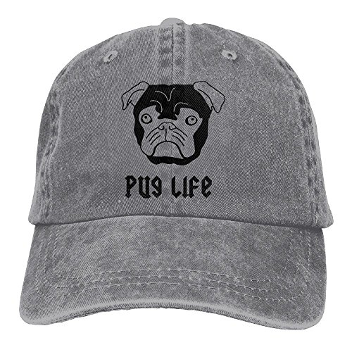 大人 デニム キャップパグ ライフ 大人気 釣り レジャー・キャップ かわいい 紫外線対策 日よけ 小顔効果 プリント付き 無地 グレー