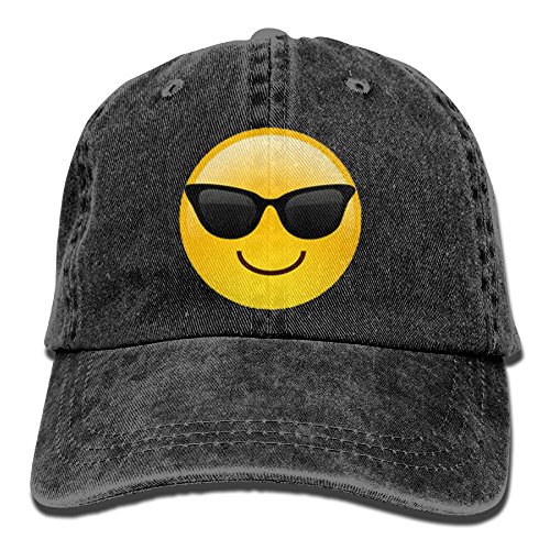 大人 デニム キャップemoji 絵文字 顔 メガネ 今季最新 ダンスの帽子 レジャー・キャップ かわいい 紫外線対策 日よけ 小顔効果 プリント付き 無地 ブラック