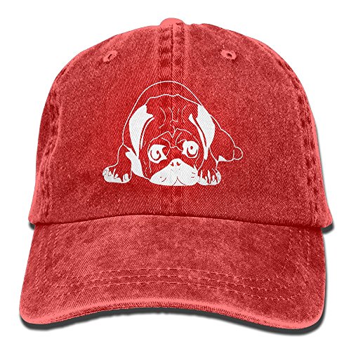 大人 デニム キャップパグ ライフ 今季最新 ゴルフ レジャー・キャップ カジュアル 紫外線対策 日よけ 小顔効果 プリント付き 無地 レッド