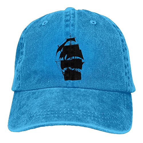 大人 デニム キャップ海賊船 大人気 旅行 レジャー・キャップ 通気性良好 紫外線対策 日よけ 小顔効果 プリント付き 無地 ブルー
