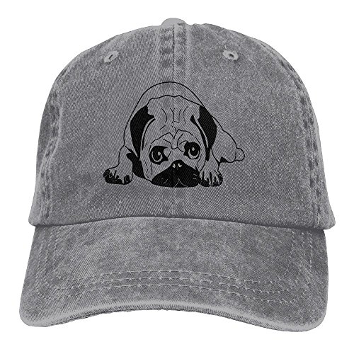 大人 デニム キャップパグ ライフ 大人気 ウトドア レジャー・キャップ 軽量 紫外線対策 日よけ 小顔効果 プリント付き 無地 グレー
