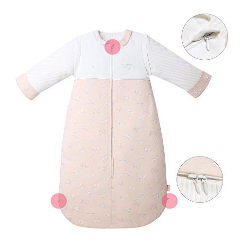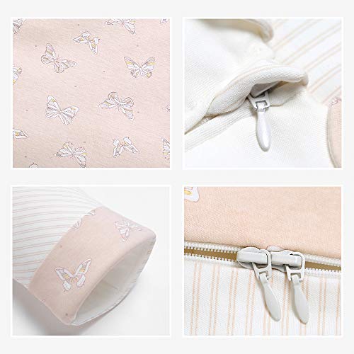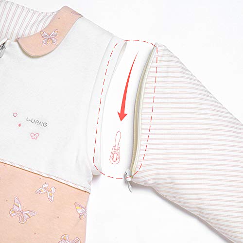 スリーパー ベビー寝袋 By L-LIANG 春夏秋冬向け 100% 綿 布団 防寒 袖取り外しOK、赤ちゃん寝具 ギフト (ピンク(蝶), キッズ(敵応身長80-100cm))