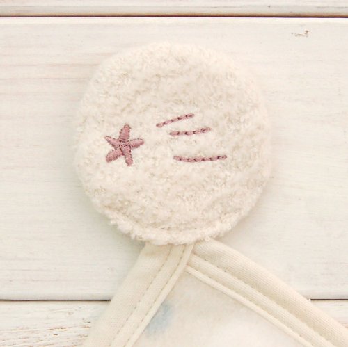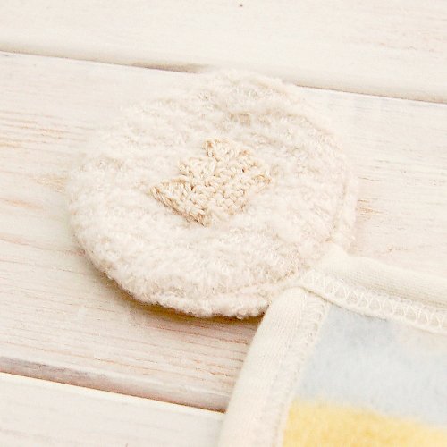 ・端についているオーガニックコットンのパイルモチーフは、触ったりなめたりして遊ぶのが大好きな赤ちゃんのためのおもちゃになり、刺繍もキュート。