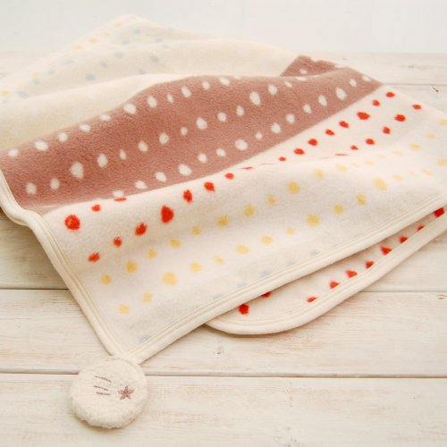 「ぽちょっ」とひとつずつ描かれた水玉模様がかわいい「POCHO」シリーズの綿毛布。