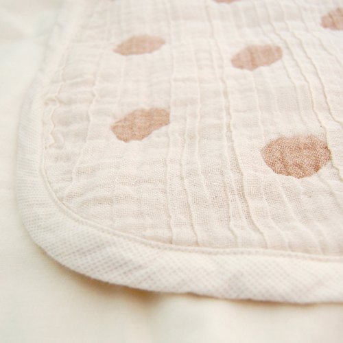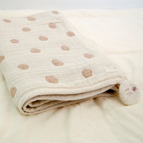 ぽちょっとした手描き風水玉柄がキュートな6重ガーゼケットは、オーガニックコットンを使用しているので肌触り抜群&安心。