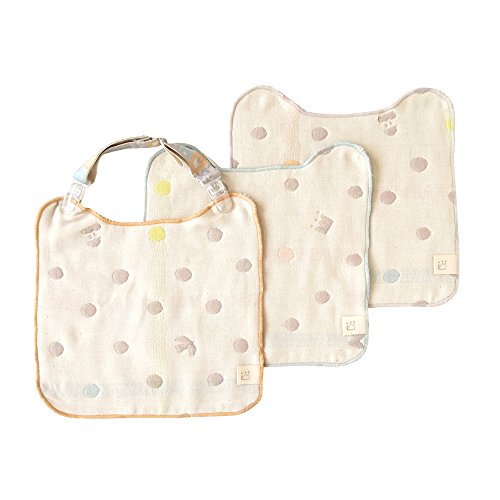 「ぽちょっ」とひとつずつ描かれた水玉模様がかわいい「POCHO」シリーズの、 マルチクリップ&ガーゼハンカチ3枚の4点セット。