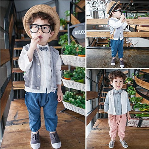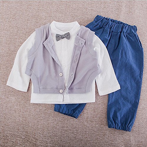 Narashop3点セット スーツ タキシード 男の子 キッズ 卒園式・発表会・結婚式・卒業式・七五三 子供スーツ (90, ブルー)