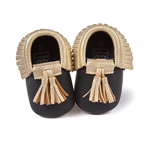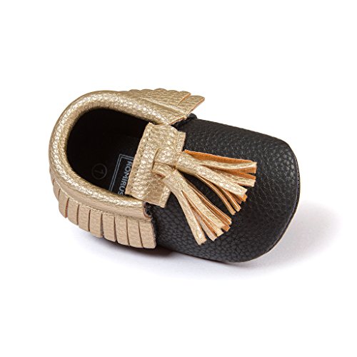 Nasbach ベビーシューズ 赤ちゃん キッズ  ルームシューズ  ブラック&ゴールド 11cm