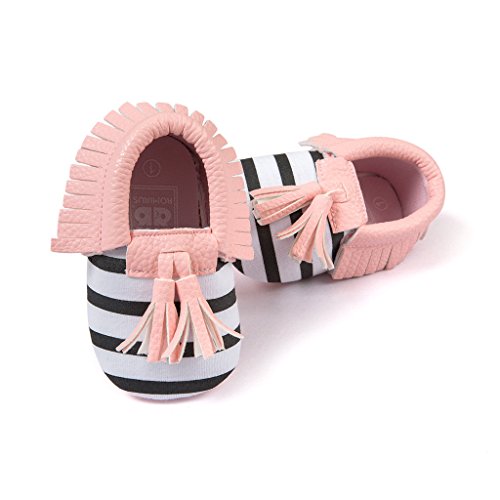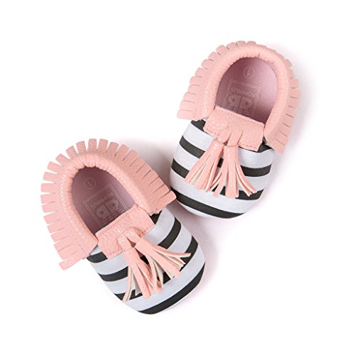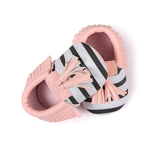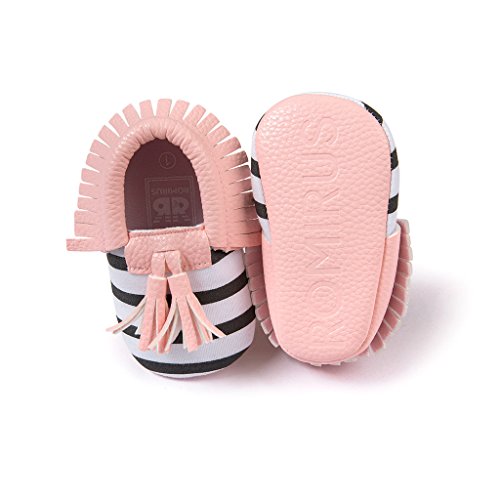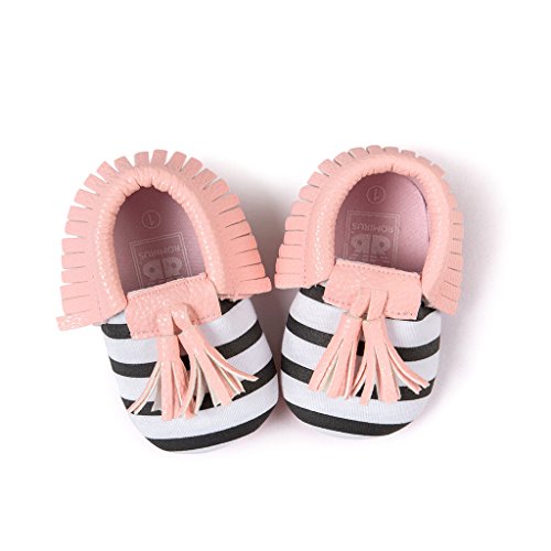Nasbach ベビーシューズ 赤ちゃん キッズ  ルームシューズ  縞&ピンク 13cm