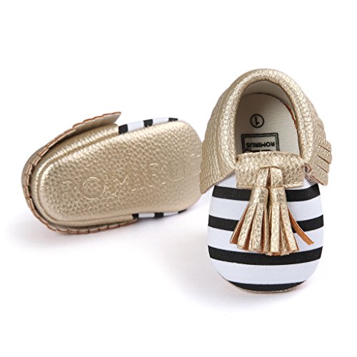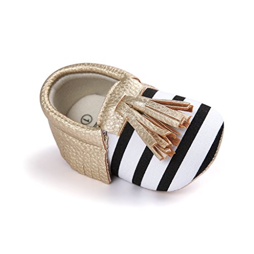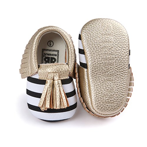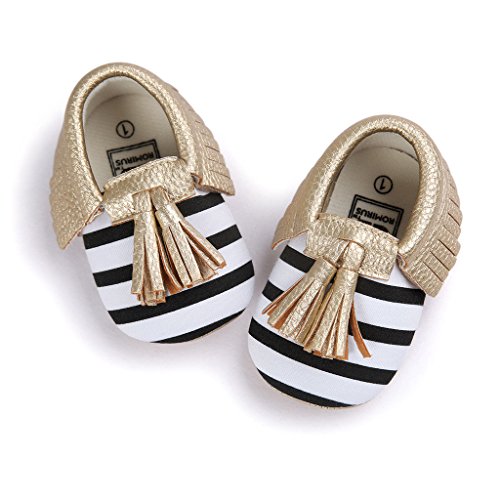 Nasbach ベビーシューズ 赤ちゃん キッズ  ルームシューズ  縞&ゴールド 11cm