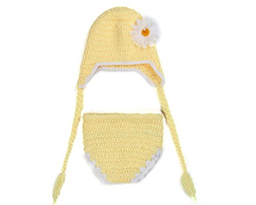 Nasbach ベビーコスチューム 赤ちゃん記念写真服装 満月/百日 着ぐるみ 毛糸 帽子(単品/セット) ヒマワリセット