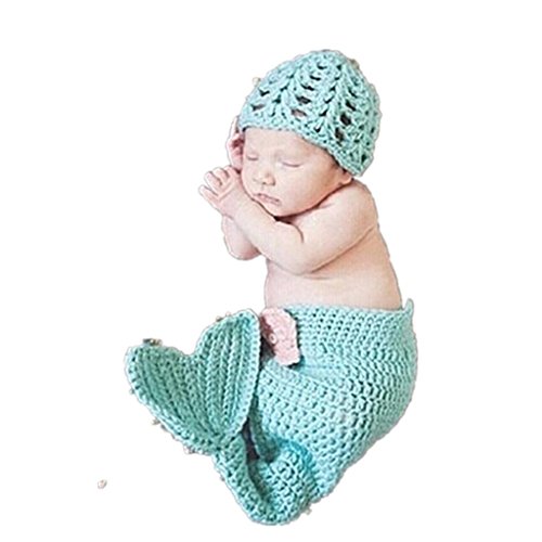 Nasbach ベビーコスチューム 赤ちゃん記念写真服装 満月/百日 着ぐるみ 毛糸 帽子(単品/セット) マーメイドセット