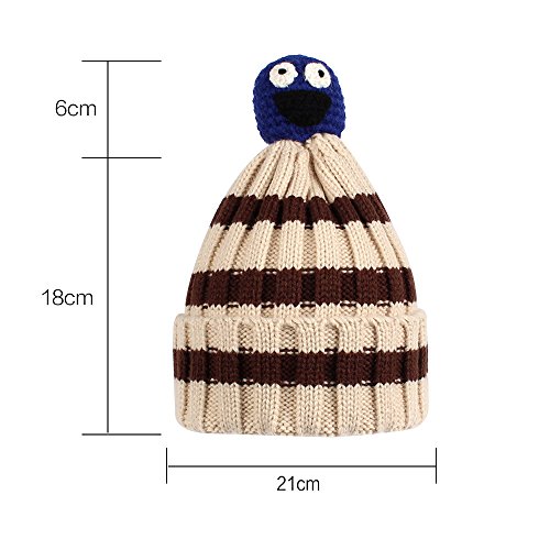 Nasular 子供帽子 ニット帽子 ウールの厚さ やわらかい 肌さわりよく 保温性伸縮性抜群 ひよこベビー付き カラーストライプ 巻き込む式 おしゃれ かわいい 児童 小学生 春秋冬用 (2-6歳, ベージュ+コーヒーカラー)