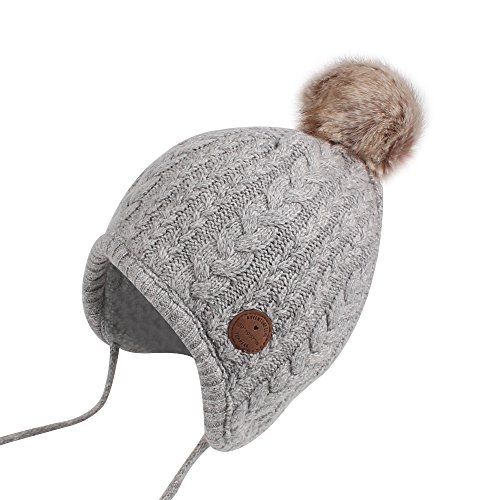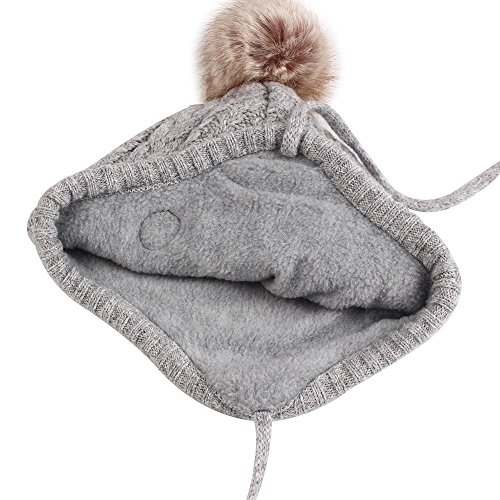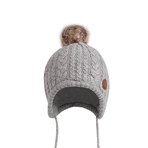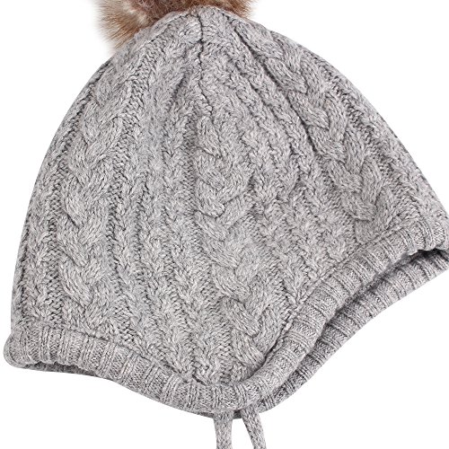 Nasular ベビー帽子 秋冬 赤ちゃん帽子 ニットハット 手編み フリースウール厚さ かわいい やわらかい 肌さわりよく 無地 耳保護 防寒保温 綿 男の子 女の子 キッズ 子供秋冬用 (1-2歳, グレー)
