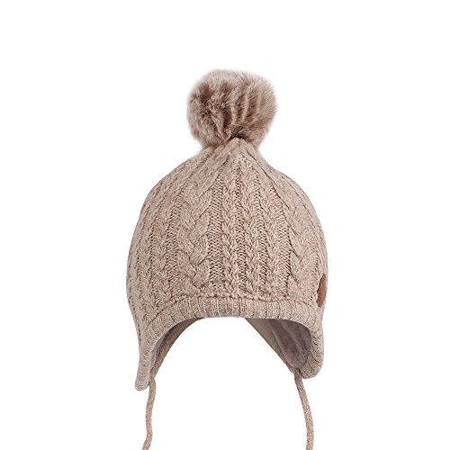 Nasular ベビー帽子 秋冬 赤ちゃん帽子 ニットハット 手編み フリースウール厚さ かわいい やわらかい 肌さわりよく 無地 耳保護 防寒保温 綿 男の子 女の子 キッズ 子供秋冬用 (1-2歳, カーキ)
