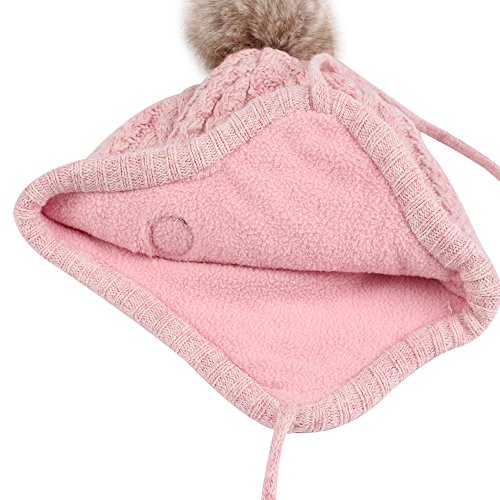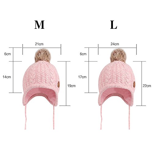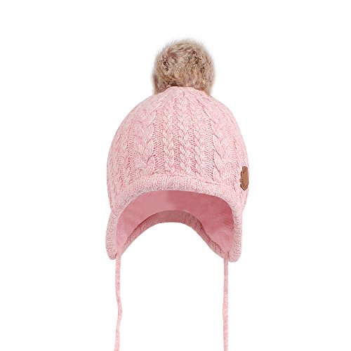 Nasular ベビー帽子 秋冬 赤ちゃん帽子 ニットハット 手編み フリースウール厚さ かわいい やわらかい 肌さわりよく 無地 耳保護 防寒保温 綿 男の子 女の子 キッズ 子供秋冬用 (1-2歳, ピンク)