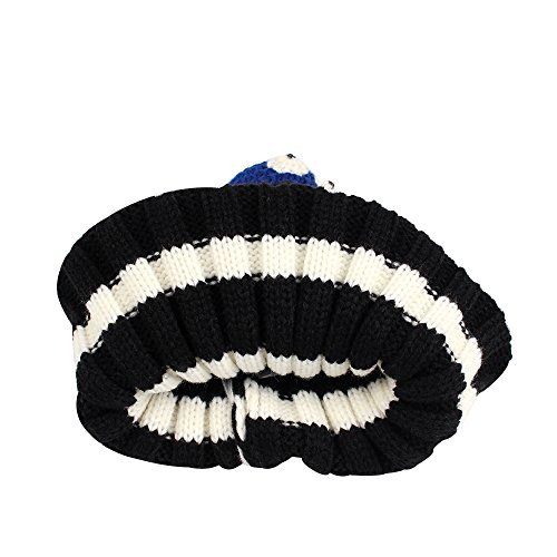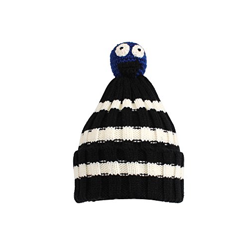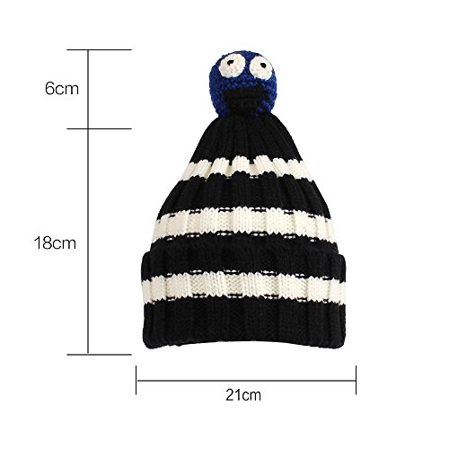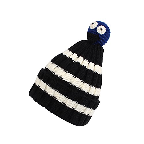 Nasular 子供帽子 ニット帽子 ウールの厚さ やわらかい 肌さわりよく 保温性伸縮性抜群 ひよこベビー付き カラーストライプ 巻き込む式 おしゃれ かわいい 児童 小学生 春秋冬用(2-6歳, ブラック+ホワイト)