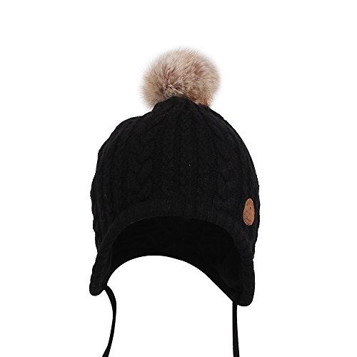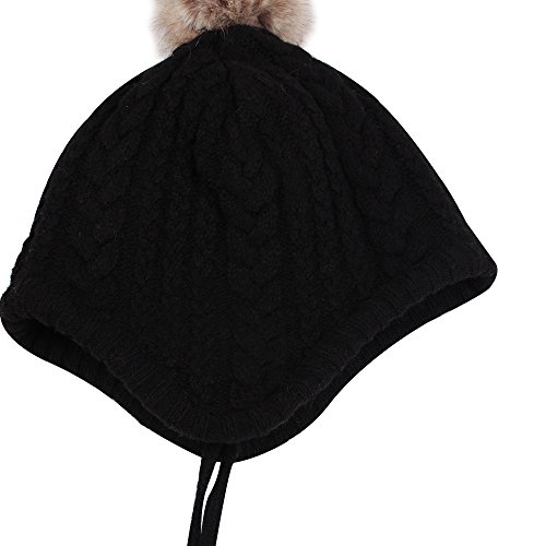 Nasular ベビー帽子 秋冬 赤ちゃん帽子 ニットハット 手編み フリースウール厚さ かわいい やわらかい 肌さわりよく 無地 耳保護 防寒保温 綿 男の子 女の子 キッズ 子供秋冬用(1-2歳, ブラック)