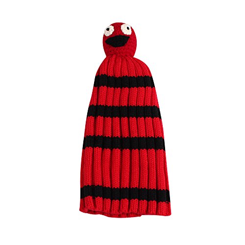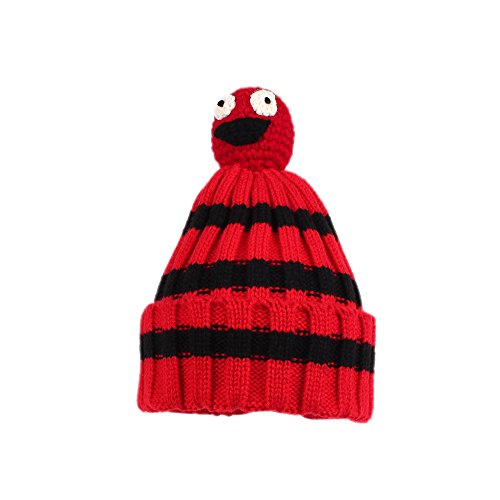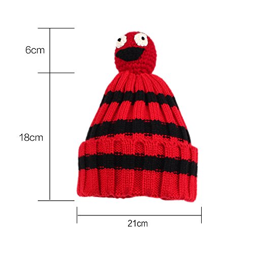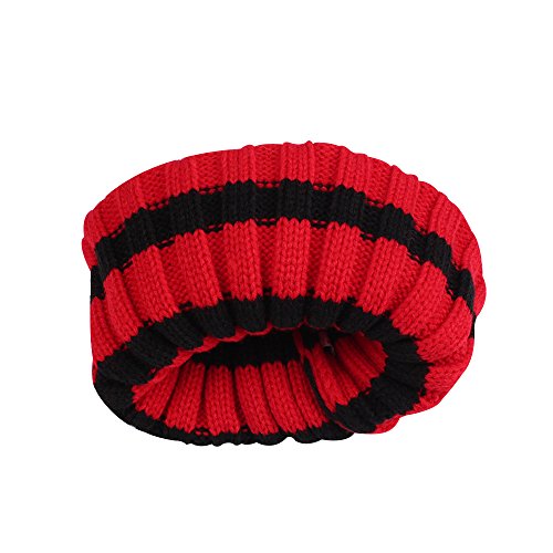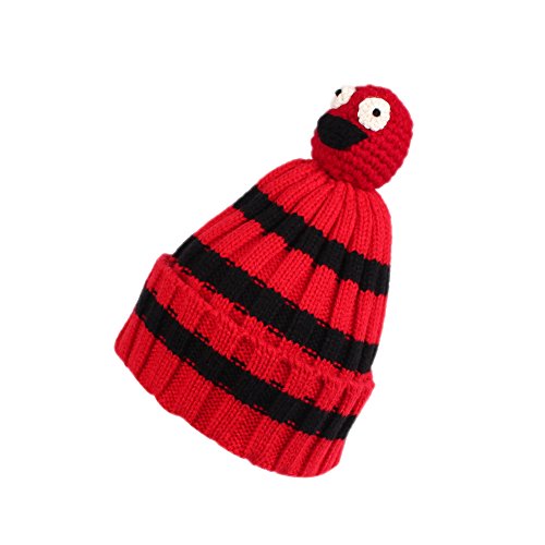 Nasular 子供帽子 ニット帽子 ウールの厚さ やわらかい 肌さわりよく 保温性伸縮性抜群 ひよこベビー付き カラーストライプ 巻き込む式 おしゃれ かわいい 児童 小学生 春秋冬用(2-6歳, レッド+ブラック)