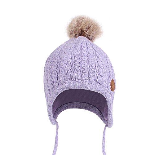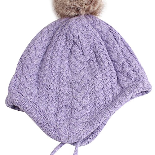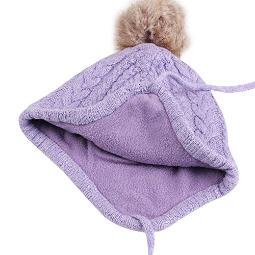 Nasular ベビー帽子 秋冬 赤ちゃん帽子 ニットハット 手編み フリースウール厚さ かわいい やわらかい 肌さわりよく 無地 耳保護 防寒保温 綿 男の子 女の子 キッズ 子供秋冬用 (0-1歳, バイオレット)