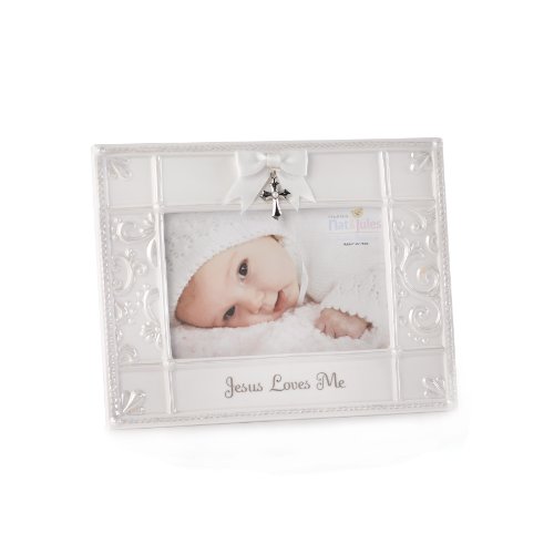 Holds a 4 x 6 vertical photo;Made from porcelain;Has a triangle style wall hanger and an easel backer;Reads: Jesus loves me;Arrives in a gift box, ready for gift giving