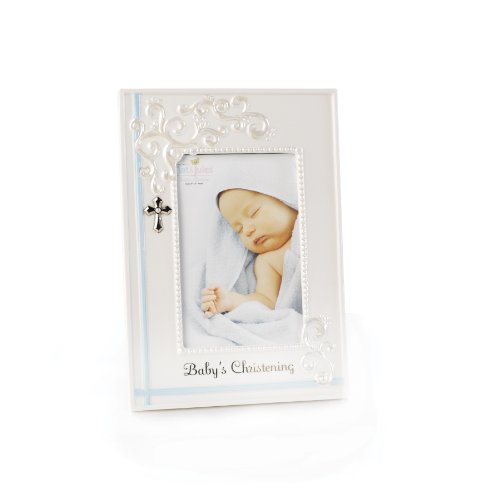 Holds a 4 x 6 vertical photo;Made from porcelain;Has a triangle style wall hanger and an easel backer;Reads: Baby's christening;Arrives in a gift box, ready for gift giving
