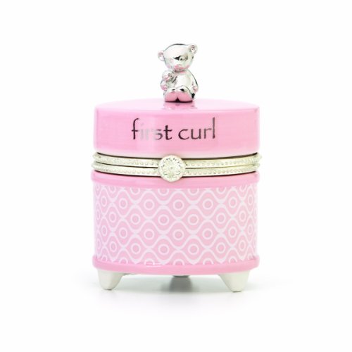 Hinged cover reads First Curl with a silver teddy bear accent on the top;Keepsake Box is 2 in diameter;Arrives in a gift box, ready for gift giving;Makes the perfect gift for the new little one in your life