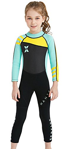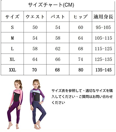 Nataly Osmann 2.5MM 子供用ウェットスーツ キッズウエットスーツ 2.5ミリ 防寒保温連体長袖と短袖フルスーツ 女の子用ダイビングスーツ 日焼け止めの水着