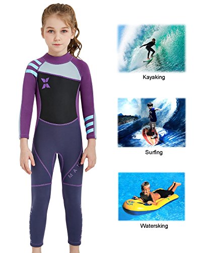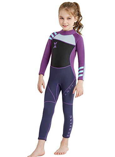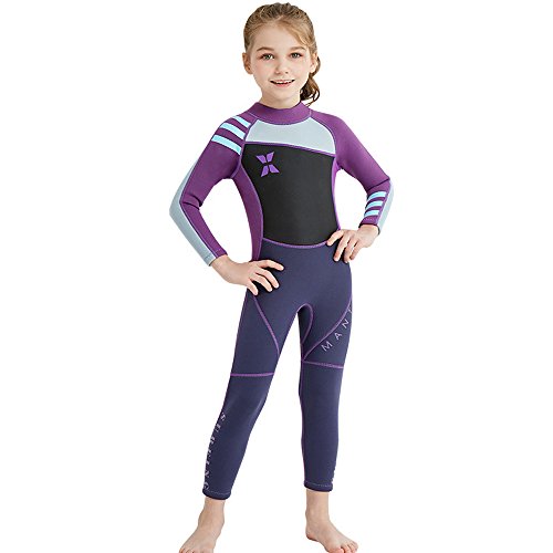 Nataly Osmann 2.5MM 子供用ウェットスーツ キッズウエットスーツ 2.5ミリ 防寒保温連体長袖と短袖フルスーツ 女の子用ダイビングスーツ 日焼け止めの水着