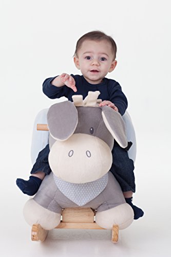 A gorgeous and fun donkey rocker;Has a seat with a safety harness;Has wooden handles to hold onto;For use from 10-36 months;Conforms with CE standards