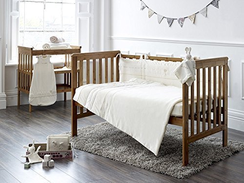 The set includes cot/cotbed bumper, fitted sheet and coverlet.;Naturally coloured cotton and silk with heart detailing