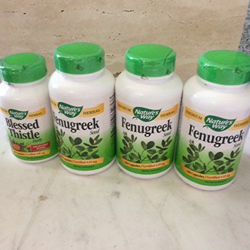 - Fenugreekフェヌグリーク610mg180粒入り3本とBlessed Thistleミルクシスル390mg100粒入りの4本セット