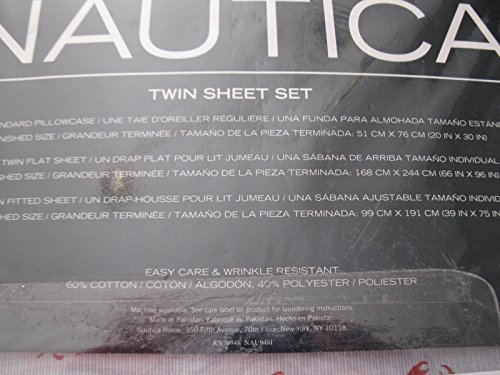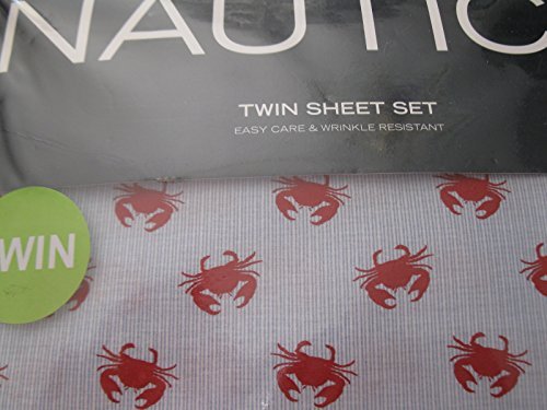 Nautica Red Crab Pinstripped Twin Sheet Set. 60% cotton & 40% polyester. Easy care - wrinkle resistant - Machine Wash.