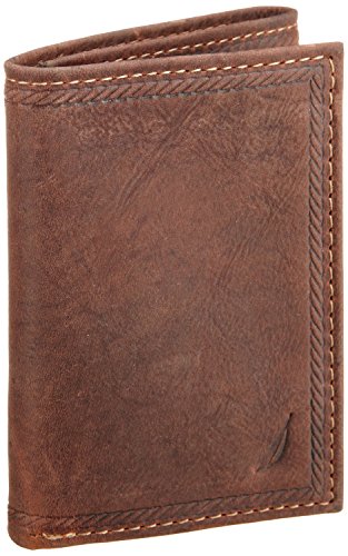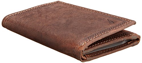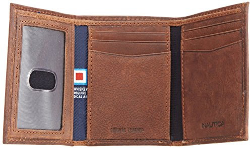 Nautica Gunwale trifold made of cowhide leather with bill compartment, six credit card pockets, leather framed ID window and extra storage compartments