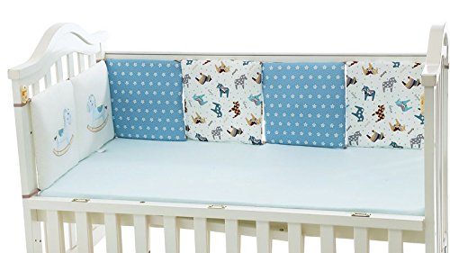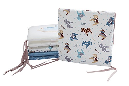 ベビーベッドガード半周 ミニベッド用 かわいいベッドガードパット ミニベッドガード 6点セット (木馬)