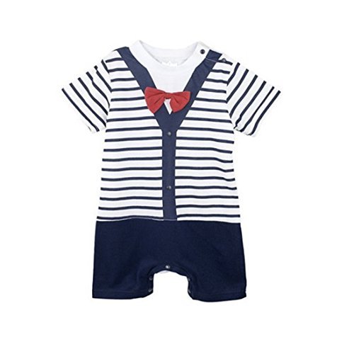 - 男の子の紳士用ロンパース、蝶ネクタイとのジャンプスーツ、Vネック半袖