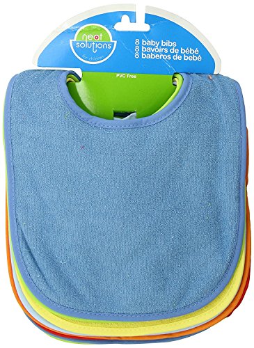 8 pack multi-color solid knit terry feeder bib -boy;Knit terry feeder bib;8 pack 3-blue, 2-green, 1- yellow, 1-red, 1-orange bib