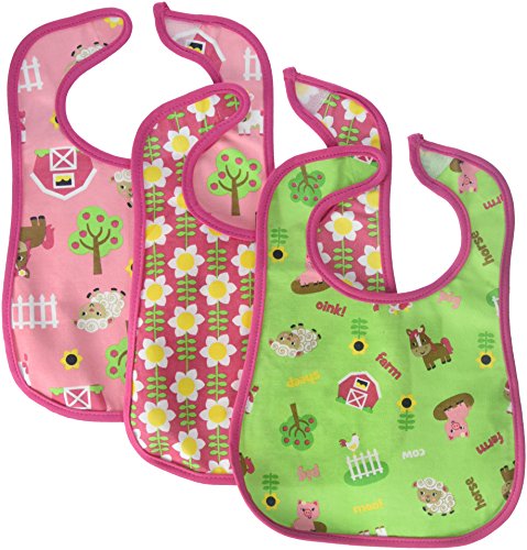 3 pack printed interlock/ water resistant feeder bib girl design;Printed interlock/ water resistant feeder bib;3 pack bib set , 1-flowers, 2-bugs bib set
