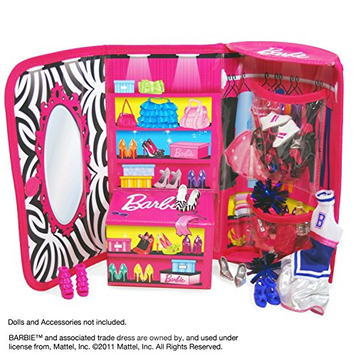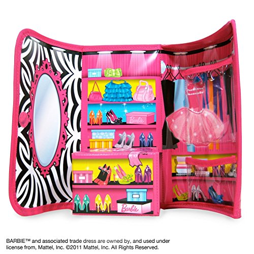 Product Description Every fashionista must be dressed to the nines for all occasions. This beautiful Barbie ZipBin Clutch and Closet is packaged and is the perfect finishing touch for any outfit. With Barbie pink woven designs on the front and a dreamy dressing room for Barbie on the inside, any girl can make a fashion statement! Ages 3+. ZipBin Products - Keep it Together. BARBIE and associated trademarks and trade dress are owned by, and used under license from, Mattel, Inc. 2012 Mattel, Inc. All Rights Reserved. Safety Warning: Choking Hazard - Small Parts. Not for Children under 3 yrs. Dimensions:. Length: 10'. Width: 2.25'. Height: 12.38' From the Manufacturer How does Barbie find the perfect look for every occasion? Every fashonista must be dressed to the nines for all occasions. This beautiful Barbie? ZipBin? Clutch is the perfect finishing touch for any outfit. With Barbie-pink woven designs on the front and a dreamy dressing room on the inside, the Barbie? ZipBin? Clutch lets every girl make a statement and never miss a chance to impress. Besides, it’s way easier to hand this to a guy than a huge purse or shopping bag while you try on that new outfit! BARBIE and associated trademarks and trade dress are owned by, and used under license from, Mattel, Inc.