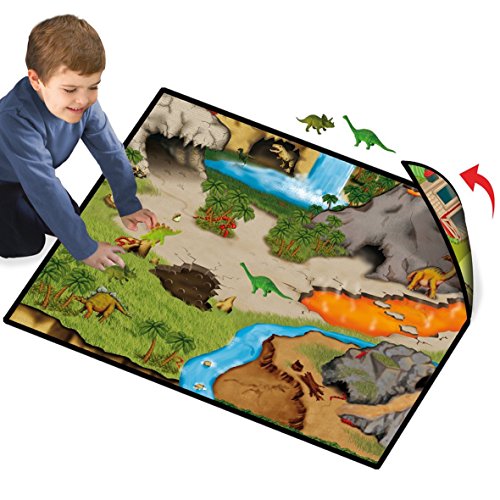 The Neat-Oh! Dinosaur Prehistoric World 2-Sided Playmat is double the fun. The Playmat features a prehistoric world complete with volcanoes and tar pits on one side for dinosaur play and a barn and fields for farming and horse riding on the other side. Neat-Oh! Dinosaur Prehistoric World 2-Sided Playmat includes three dinosaurs and is the perfect size for travel. When it’s time to go, roll up or fold and stow away! Includes 3 dinosaurs. Have fun and decorate your room with all Neat-Oh! ZipBin Dinosaur products. Ages 3+. We ARE kid’s storage. Keep It Together