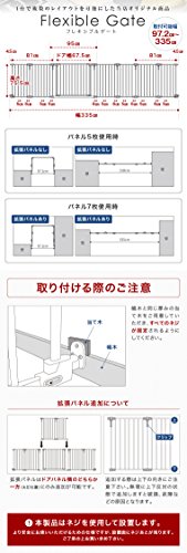 ■品名 FlexibleGate フレキシブルゲート ■取り付け幅 約97.2cm~335cm ■商品重量約13kg ■材質 スチール、樹脂 ■商品サイズ W130cm~335cm×H75.5cm×D2cm ■梱包サイズ W100cm×H83.2cm×D20.2cm ■生産国 CHINA ■製品につきましての詳細は大変お手数ではございますが下記までお問い合せ下さいませ。 【株式会社中塚小児車工業所】 電話 TEL 079-298-2279 FAX 079-292-6026