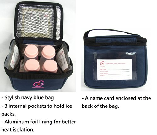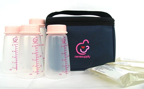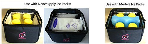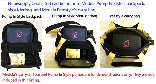 Contain one navy blue cooler bag, 3 ice packs and 4 5oz/150ml collection bottles. In retail package and sealed by manufacturer.;Cooler bag can hold four 5oz collection bottles OR 5 Nenesupply breastmilk storage bags. Cooler bag size: L*W*H: 6.7 x 6.2 x 5.5;Cooler Bag can fit into carry-all totes of Medela Pump In Style and Freestyle Breastpumps as shown in the photos. Bags made from sturdy materials for better heat isolation.;Collection bottles made from BPA free materials. ; Comply with EU Commission Regulation (EU) No 10/2011 for plastic materials that intended to come into contact with food. Each batch is tested by independent labs for quality and safety. Bottles can be sanitized with water steam or boiling water.;3 ice packs can keep milk cool for 6-8 hours in room temperature. Spare ice packs can also be purchased on Amazon.com